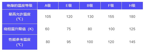 電動機的絕緣等級是指其所用絕緣材料的耐熱等級,分A、E、B、F、H級.允許溫升是指電動機的溫度與周圍環境溫度相比升高的限度。