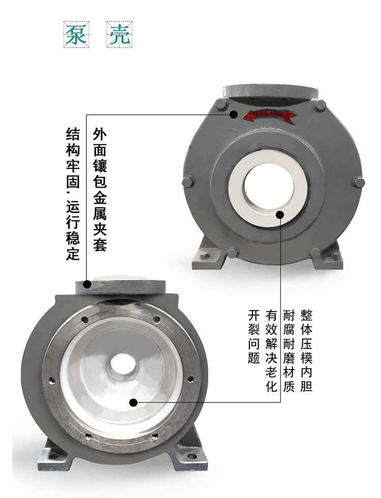 可靠厚實,外面鑲包金屬夾套,結構牢固,運行穩定,且能有效解決長期室外運行造成的塑料模壓件老化等不利影響。過流部件采用耐腐耐磨的UHM-WPE,PVDF等非金屬材料制造。該泵雖為半開式葉輪,得益于成熟的水力設計,具有較高的效率。采用獨特的耐顆粒集裝式單,雙端面機械密封。