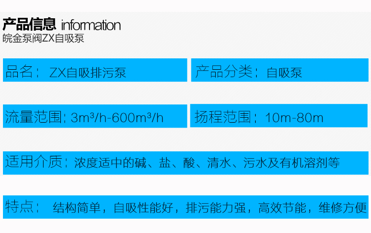 皖金泵閥不銹鋼自吸泵主要參數: